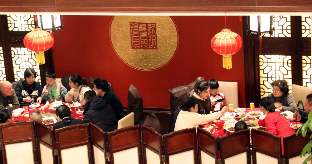 三餐煙火暖,生活皆安然。春節(jié)期間,人們走進(jìn)餐廳,與親人品嘗美食,享受團聚時光。