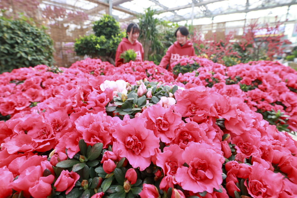 2024年2月8日,市民在河北省唐山市豐南區(qū)一處花卉市場選購鮮花。新華社發(fā)(李秀清 攝)