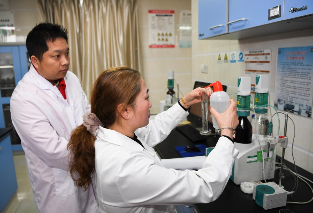 ??工作人員在重慶涪陵頁巖氣田油氣化驗室作業(yè)。