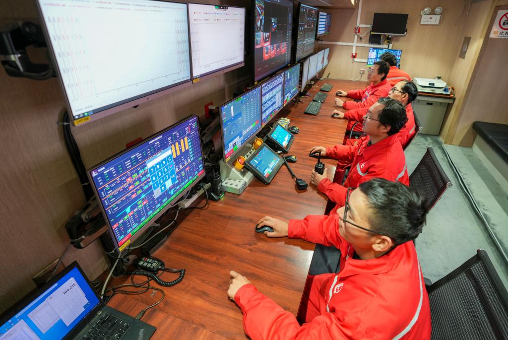 ??技術人員在重慶涪陵頁巖氣田焦頁5號電驅壓裂平臺控制室作業(yè)。