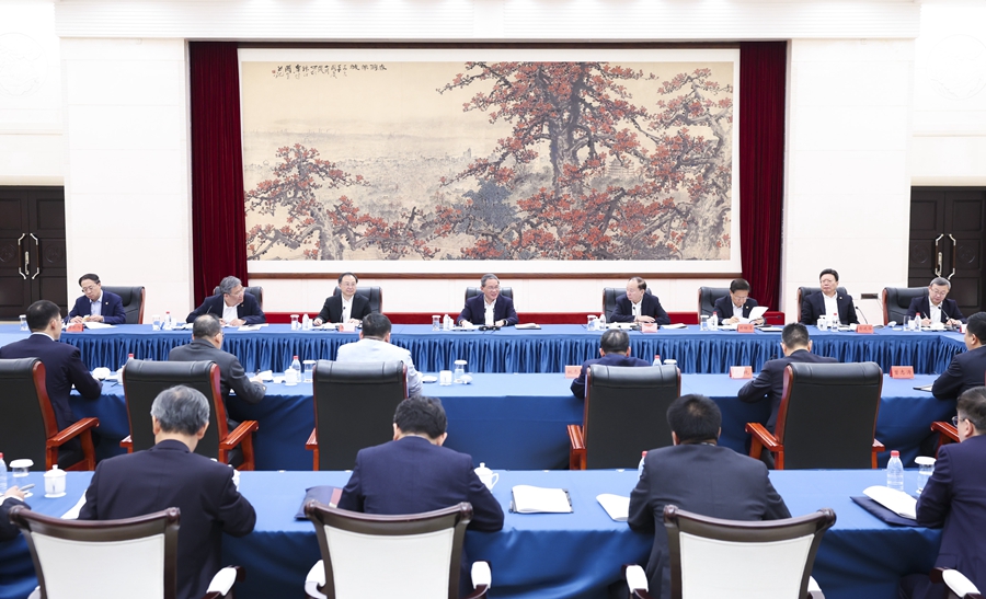 ??4月18日,國務(wù)院總理李強(qiáng)在第135屆中國進(jìn)出口商品交易會(廣交會)企業(yè)館巡館。這是4月17日,李強(qiáng)同廣交會參展企業(yè)代表座談交流。新華社記者 黃敬文 攝