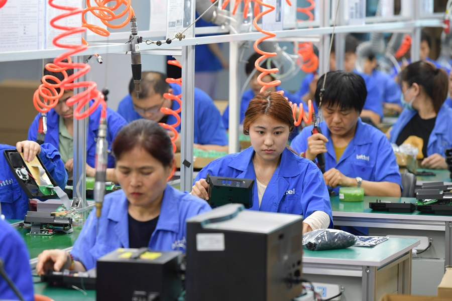 ??2024年5月22日,在位于日照市東港區(qū)新舊動能轉(zhuǎn)換示范基地的山東比特智能科技股份有限公司新廠區(qū),工人在車間內(nèi)工作。新華社記者 孟濤 攝