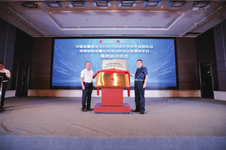 中國質(zhì)量檢驗協(xié)會碳中和綠色發(fā)展專業(yè)委員會河南省高質(zhì)量發(fā)展建設標準創(chuàng)新服務平臺揭牌。