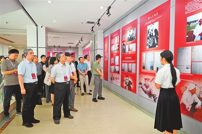 7月30日,全國(guó)多地的經(jīng)濟(jì)媒體負(fù)責(zé)人來(lái)到河南開封科技傳媒學(xué)院,參觀“勿忘人民——學(xué)習(xí)穆青、增強(qiáng)‘四力’”主題展。 河南日?qǐng)?bào)社全媒體記者 朱哲 攝