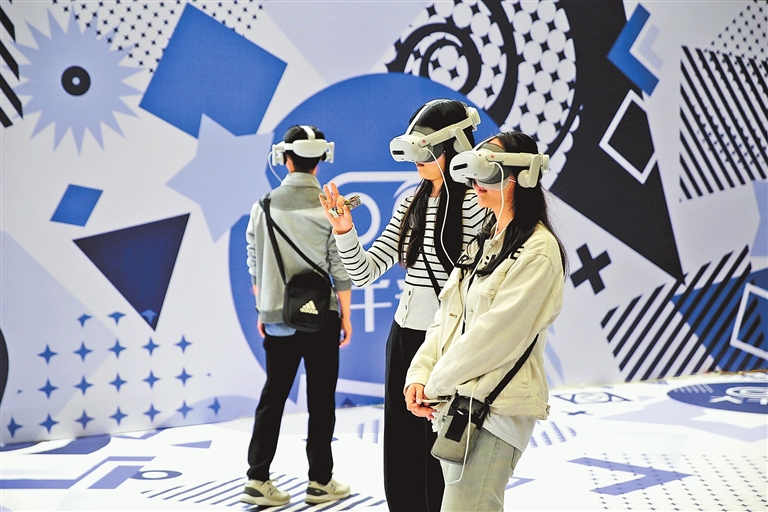 新模式、新理念、新場景,展會“新意”不斷。在展區(qū)另一頭,剛體驗完VR產品的張女士由“旁觀者”化身“劇中人”,直呼過癮。