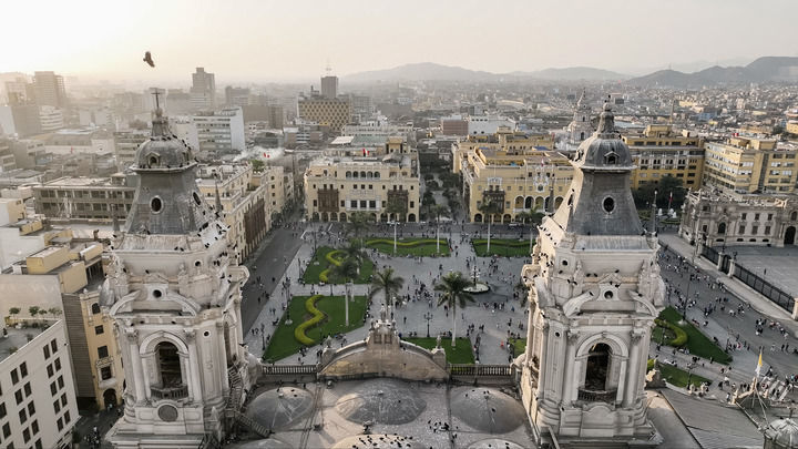 ??這是10月13日拍攝的秘魯首都利馬武器廣場(chǎng)(無人機(jī)照片)。新華社記者 李木子 攝
