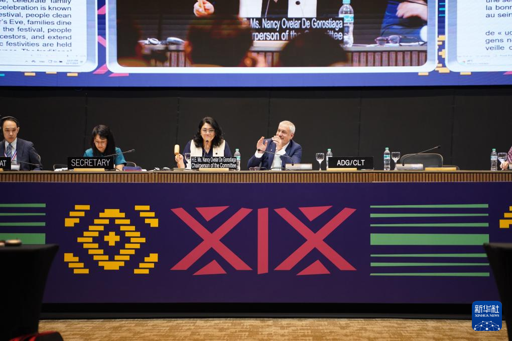 ??這是12月4日在巴拉圭亞松森拍攝的聯(lián)合國教科文組織保護(hù)非物質(zhì)文化遺產(chǎn)政府間委員會(huì)第19屆常會(huì)評(píng)審現(xiàn)場(chǎng)。新華社記者 朱雨博 攝