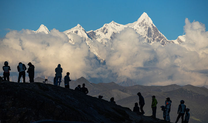 ??游客在色季拉山口的川藏公路邊觀賞南迦巴瓦峰風(fēng)光(2023年9月5日攝)。新華社記者 丁增尼達(dá) 攝