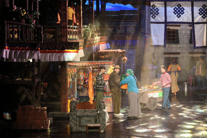 ??2022年3月23日,話劇《八廓街北院》在西藏自治區(qū)藏戲演藝中心上演。該劇由西藏自治區(qū)話劇團(tuán)創(chuàng)作演出,以拉薩八廓街為背景,展現(xiàn)了一座多民族聚居院落的鄰里深情。新華社記者 姜帆 攝