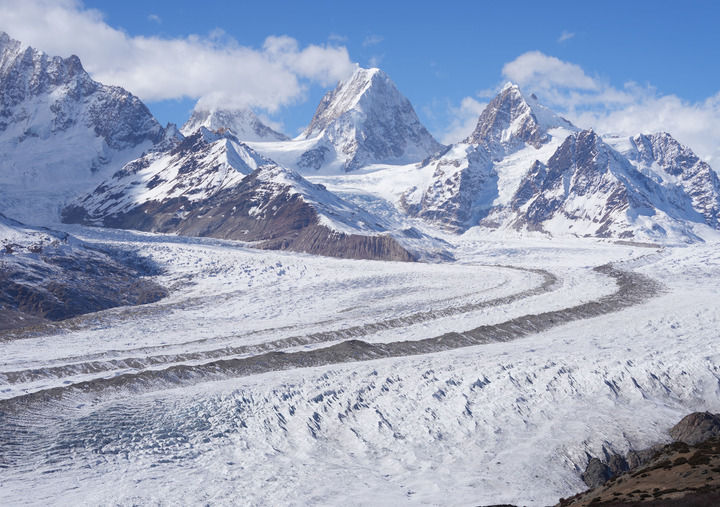 ??來(lái)古冰川位于西藏自治區(qū)昌都市八宿縣然烏鎮(zhèn)境內(nèi),因其外觀形態(tài)獨(dú)特壯美,成為川藏公路游客的打卡勝地(2024年12月18日攝)。新華社記者 丁汀 攝