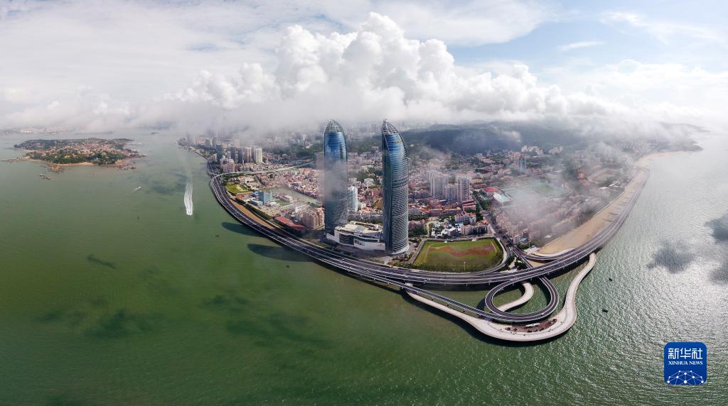 這是廈門演武大橋沿線及鼓浪嶼(拼接照片,2017年8月24日攝)。新華社記者 姜克紅 攝