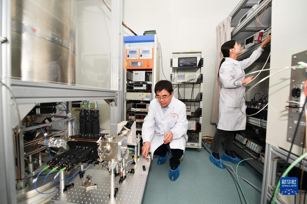 2月8日,科研人員在中國科學(xué)院國家授時中心空間鍶原子光鐘實驗室工作。新華社記者 張博文 攝