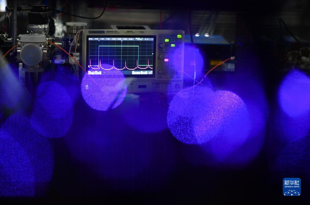 2月7日,在中國科學(xué)院國家授時中心空間鍶原子光鐘實驗室,測量儀器顯示相關(guān)實驗信號。新華社記者 張博文 攝