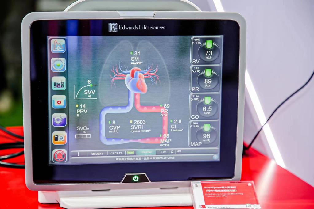 第四屆進博會上的愛德華生命科學展臺里,全新一代HemoSphere病人監(jiān)護儀正在展示。(受訪對象提供)